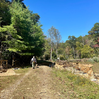 Two days after the storm a single photo made its way out from our community. Someone had sent our neighbor, Danielle, who was also in Charlotte that weekend, the picture. We looked in horror. It was taken where our driveway had met Rush Creek Road, a small piece of our picket fence the only way we could tell the location. Otherwise we couldn't figure out which direction it was oriented or what exactly we were seeing. But what we could tell was it was part of our fence. The creek was still full of water, it took days for the mountains and hills to drain. There was no road. There was no driveway. A couple neighbors were standing and looking at the damage. At least we knew people, our neighbors, seemed to be ok.